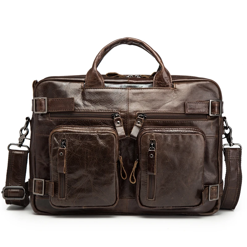 • New TIANHOO Luxury genuine leather bag shoulder & handle man bags 14 inch laptop cowwide layer leather