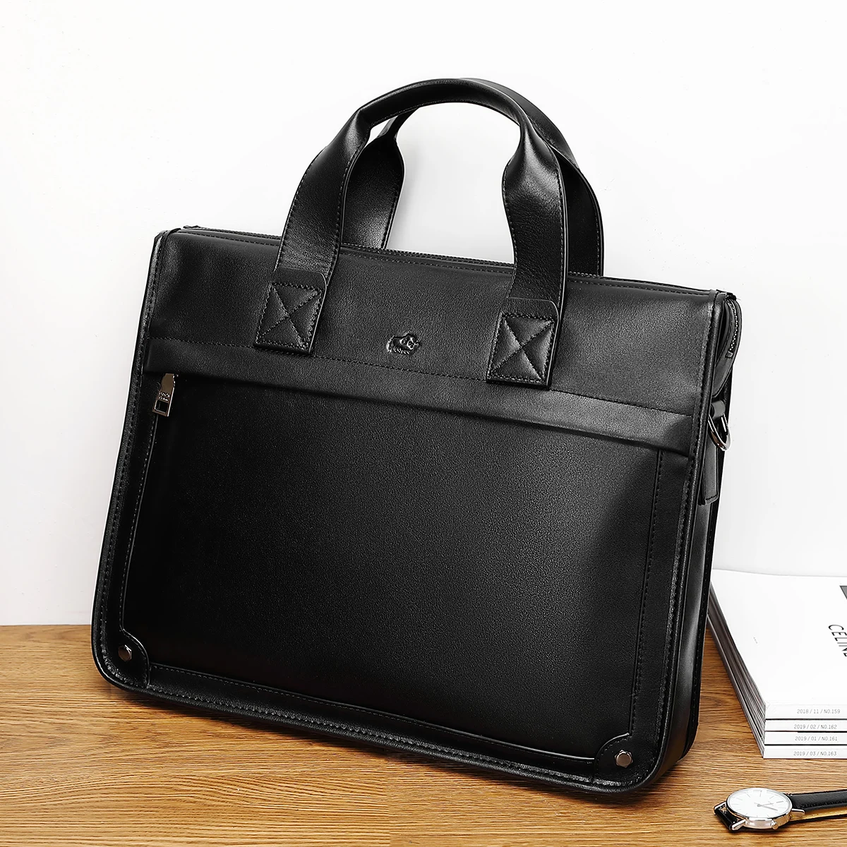 • New TIANHOO Luxury genuine leather bag shoulder & handle man bags 14 inch laptop cowwide layer leather
