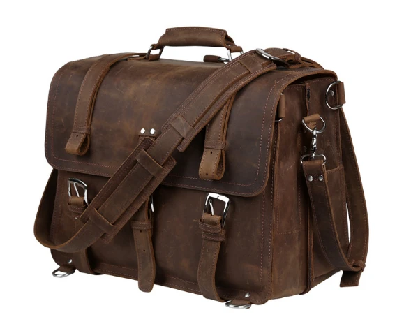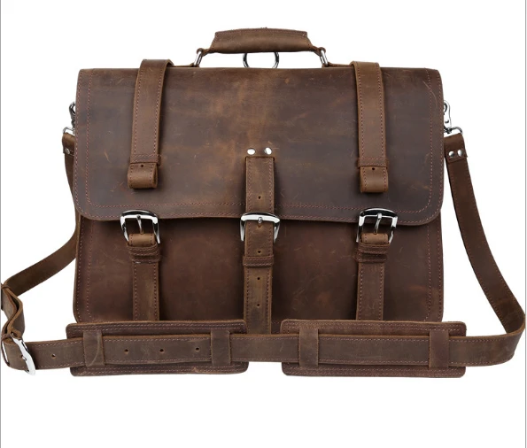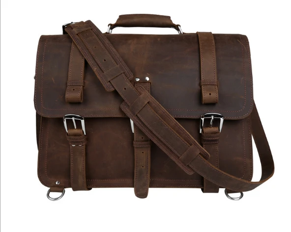 Cheap Multifunctional Crazy Horseskin Large-capacity Portable Bags Men's Messenger 15.6" laptop Bags
