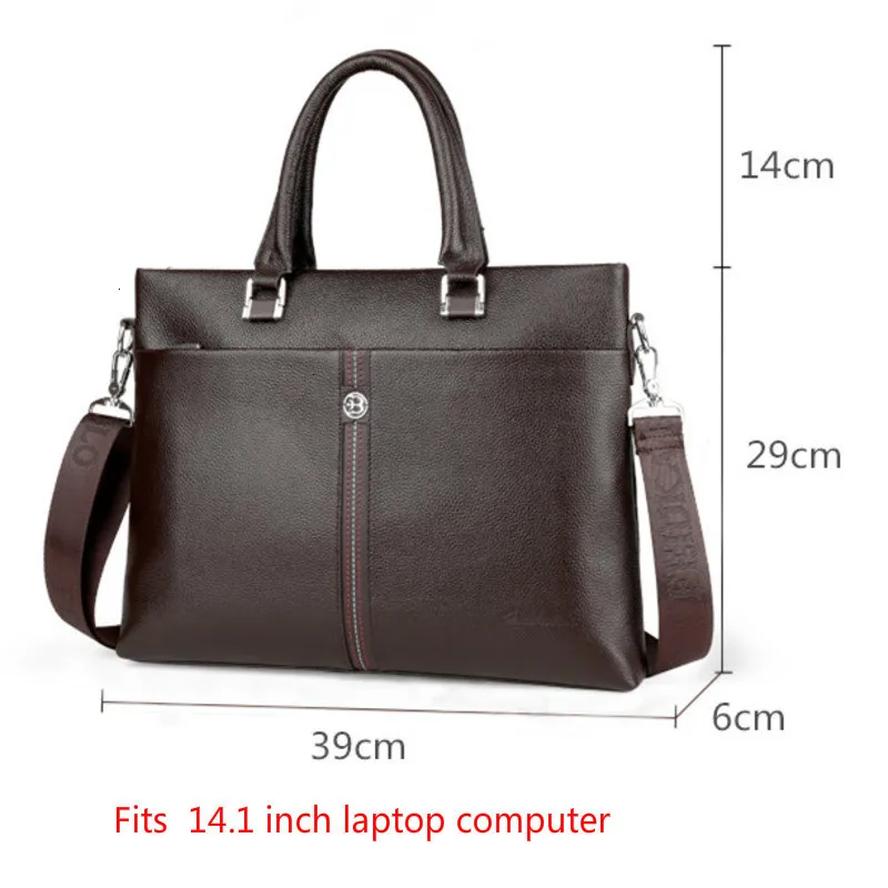 • New TIANHOO Luxury genuine leather bag shoulder & handle man bags 14 inch laptop cowwide layer leather