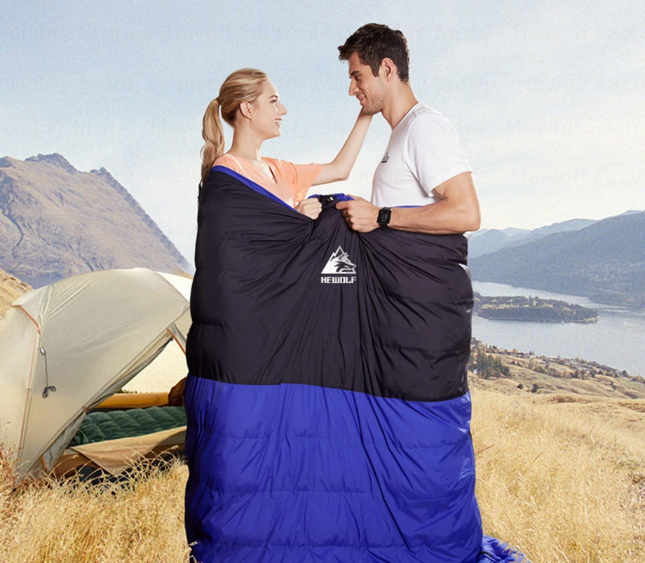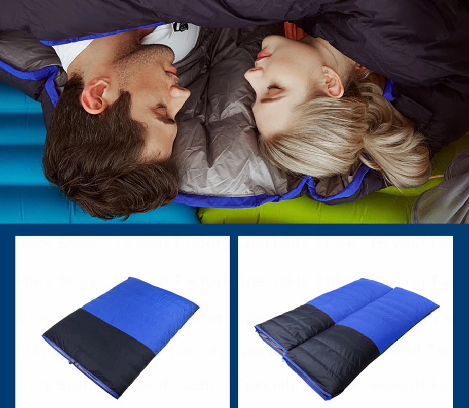 Hot Product Hewolf 2 Persons Camping Sleeping Bag Duck Down Winter Thickening Envelope Type Couple Comfortable