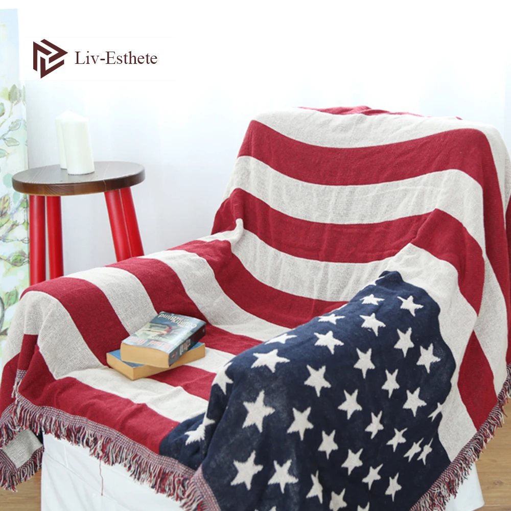 Free Shipping Liv-Esthete Fashion American Flag Blanket Throw Tassel Blanket For Adult Sofa Bed Sleeping Bag Wrap